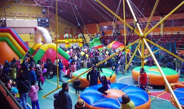 El frío y la lluvia no fueron obstáculo para qué los niños repletaran el gimnasio municipal, recinto que fue el escenario de todo tipo de actividades destinadas a brindarles un momento de recreación y diversión completamente gratis.