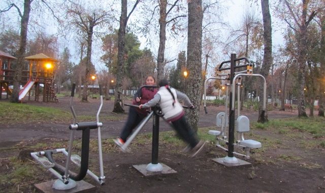 Muy satisfechos se encuentran los vecinos de Licán Ray al apreciar que en la Plaza de Armas están ubicadas quince modernas máquinas de ejercicios, trasformando a este importante espacio de la comuna en un innovador gimnasio al aire libre.
