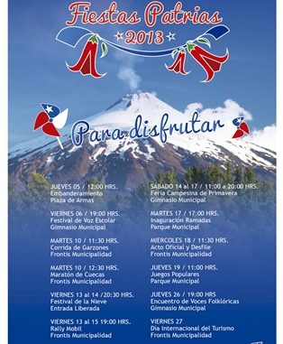 Panoramas de Fiestas Patrias en Pucón Martes, 3 Septiembre, 2013 a las 12:24 admin Cultura y Espectáculos 0 Twitter Facebook LinkedIn WhatsApp Twitter Facebook LinkedIn WhatsApp Relacionado 2013Fiestas PatriasPanoramasPucón