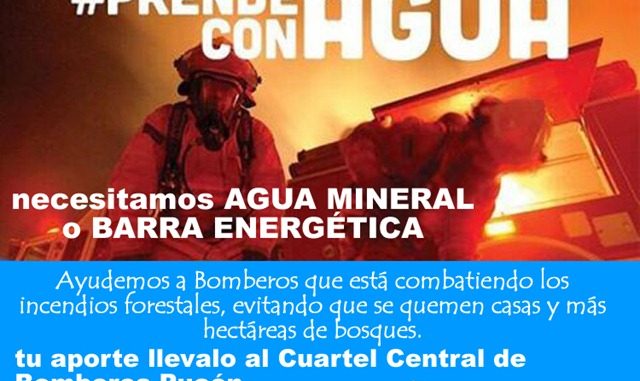 Bomberos ha cumplido un rol fundamental en el combate de las llamas y a nivel nacional el llamado es a apoyarles llevando agua mineral o barras energéticas. Pucón no quiso quedarse atrás y un grupo de tuiteros de esta comuna a través de esa red social se coordinaron para iniciar esta campaña.