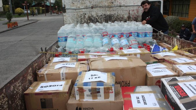 Gracias a la campaña realizada por la Oficina Municipal de la Juventud (OMJ), con el apoyo de la Municipalidad de Pucón, se logró reunir más de 250 botellones de agua, 50 kilos de azúcar, 250 paquetes de fideos y tallarines; además de productos de higiene y cuidado personal.