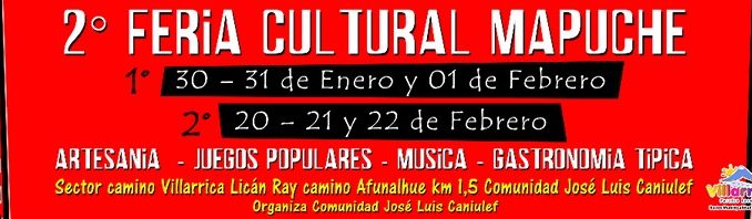 Comunidad José Luis Caniulef invita a la segunda feria cultural mapuche Lunes, 26 Enero, 2015 a las 20:54 prensa Cultura y Espectáculos 0 Twitter Facebook LinkedIn WhatsApp Twitter Facebook LinkedIn WhatsApp Relacionado CulturaferiaLican-RaymapucheVillarrica