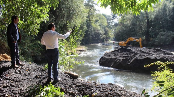 El alcalde de la comuna de Villarrica, Pablo Astete junto a su equipo asesor municipal, visitó este martes los trabajos de inicio de obras que realiza la Empresa García Gross, y que entre sus fases contempla la modificación del cauce en el lecho del río Voipir, empedrado para un filtro natural, conducción por tuberías hacia una noria y bombas de expulsión a los estanques, además de las obras eléctricas necesarias para su funcionamiento.