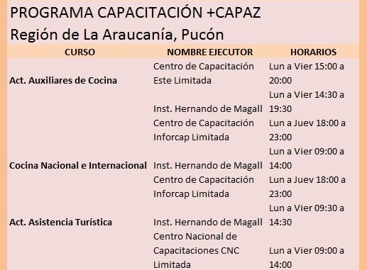 Como una invitación a todos los puconinos, este lunes 13 se puede postular a los cursos de capacitación del Programa +Capaz Sence en el Auditórium Municipal –ubicado en Arauco #370, oficina OML– desde las 12:30 horas.