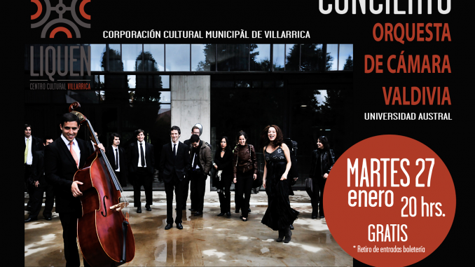 Hoy a las 20:00 horas se presentará de manera gratuita la Orquesta de Cámara de Valdivia en el Centro Cultural Villarrica. Aún hay entradas disponibles en la boletería, ubicado en Arturo Prat 880.