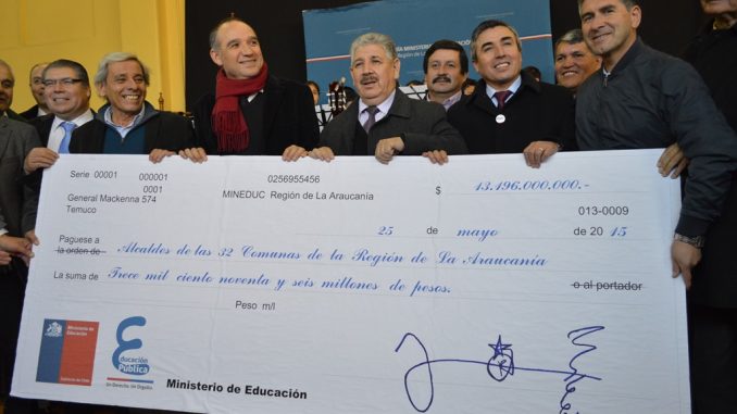 En una ceremonia, en la que participaron alcaldes de La Araucanía y directores de educación municipal de los 32 municipios, que se realizó en el emblemático Liceo Técnico Femenino de Temuco y que presidió el Seremi de Educación, Marcelo Segura, el Ministerio de Educación hizo entrega de 13 mil 196 millones de pesos, a través del Fondo de Apoyo a la Educación Pública –FAEP- 2015, para el mejoramiento de la gestión municipal en materia de educación.