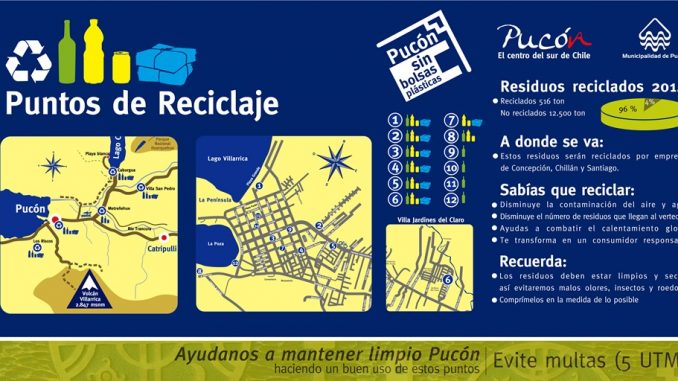 La directora de aseo, ornato y unidad ambiental municipal, Evelyn Silva, señaló que “estamos en una campaña de crear consciencia sobre los puntos limpios para reciclar, poniendo énfasis en que estos no son para arrojar basura domiciliaria sino vidrio, papel y plástico. Actualmente, tenemos 12 lugares para que la comunidad puconina vaya a dejar sus residuos”.