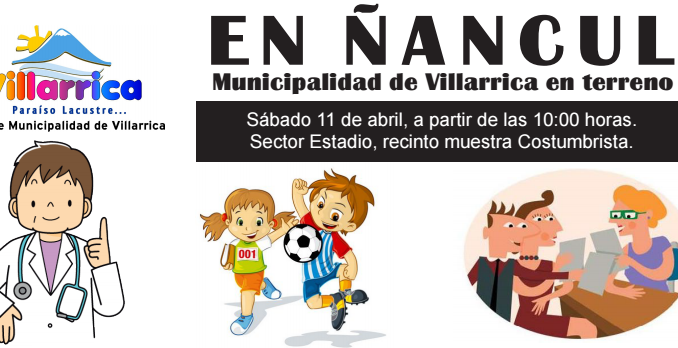 Con la finalidad de acercar los diferentes servicios que presta el municipio local y diversas instituciones públicas a la comunidad y a solicitud del alcalde Pablo Astete, la Municipalidad de Villarrica, realizará el próximo sábado 11 de abril, a partir de las 10:00 horas, en el sector Estadio – recinto de la Muestra Costumbrista – un operativo en terreno destinado a los vecinos de Ñancul.