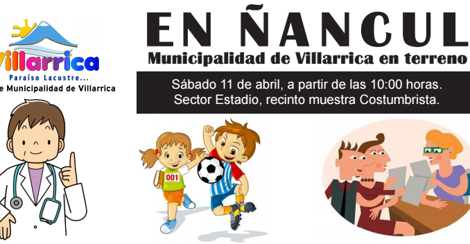 Con la finalidad de acercar los diferentes servicios que presta el municipio local y diversas instituciones públicas a la comunidad y a solicitud del alcalde Pablo Astete, la Municipalidad de Villarrica, realizará el próximo sábado 11 de abril, a partir de las 10:00 horas, en el sector Estadio – recinto de la Muestra Costumbrista – un operativo en terreno destinado a los vecinos de Ñancul.