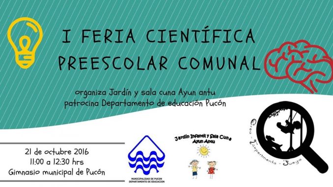 21 de octubre:I Feria Científica Preescolar en Pucón Jueves, 20 Octubre, 2016 a las 22:27 prensa Sociedad 0 Twitter Facebook LinkedIn WhatsApp Twitter Facebook LinkedIn WhatsApp Relacionado 21 de octubrePucón