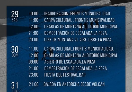 29, 30 y 31 de octubre: Pucón Mountain Fest Jueves, 27 Octubre, 2016 a las 22:39 prensa Turismo 0 Twitter Facebook LinkedIn WhatsApp Twitter Facebook LinkedIn WhatsApp Relacionado mountainoctubrePucón