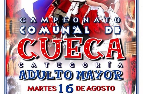 Adultos mayores tendrán su Campeonato Comunal de Cueca en Pucón Martes, 9 Agosto, 2016 a las 22:25 prensa Cultura y Espectáculos 0 Twitter Facebook LinkedIn WhatsApp El martes 16 de agosto, a las 15:00 horas, en el Gimnasio Municipal. Twitter Facebook LinkedIn WhatsApp Relacionado Adultos MayorescomunalcuecaPucón