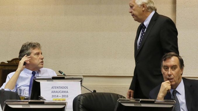 Eso sí, en medio de toda esta discusión de la Agenda Corta, destacó el letrero en el escaño del senador (RN) Alberto Espina, en el que destaca el número de atentados registrados en la Región de La Araucanía entre el 2014 y el 2016. Van 435.
