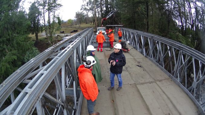 Este puente – que está en su fase de armado – tendrá una longitud aproximada de 36 metros y está diseñado para soportar cargas de hasta 20 toneladas. Su instalación está a cargo de profesionales de la Dirección Vialidad y se espera que los trabajos estén terminados durante este fin de semana.
