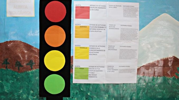 La mesa de trabajo consistió en las vías de evacuación de los niños y niñas pertenecientes a jardines infantiles, comunicación en línea (grupos de WhatsApp) sobre riesgo volcánico y aviso de sirena -en caso que la alerta técnica pase a color rojo- y conocimiento de las personalidades que trabajan en esta área; con el fin de cuidar y proteger la vida de la comunidad infantil.![]()