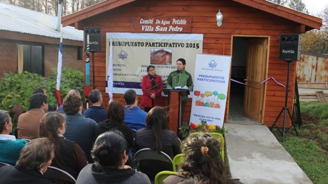 Felices están los vecinos que componen el Comité de Agua Potable Rural de Villa San Pedro, luego que años de trabajo consiguieron inaugurar la nueva sede “Hogar de Nuestras Aguas”, proyecto logrado a través de la iniciativa municipal de los Presupuestos Participativos 2015.