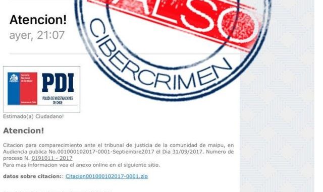 Otra modalidad de estafa electrónica inmersa en esta red global, es lo que guarda relación al envío de citaciones a Tribunales, Juzgados y la misma PDI, que se encuentran desarrollando los ciberdelincuentes y que se recepcionan por medio de correos electrónicos. “Estas citaciones a ciertas instituciones donde aparece que las personas están involucradas en una causa y en la cual los invitan a acceder a un link para obtener mayor información, no es real. PDI, Tribunales y Juzgados no realizamos comparecencias mediante e-mails donde se adjuntan links asociados a causas. Éstas se hacen de manera presencial o en algunas ocasiones vía telefónica. Se recomienda verificar por medio de la página del Poder Judicial o bien llamando directo a la PDI si estamos relacionados con un tipo de citación y causas”, puntualiza el comisario Vera.