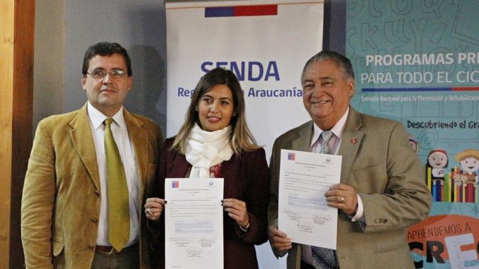 Con la presencia de la directora regional de Senda Previene, Stefany Acuña, y el alcalde de Pucón, Carlos Barra, se efectuó una firma entre ambas partes para dar acuerdo y compromiso en temas preventivos, orientados a los establecimientos de enseñanza media.