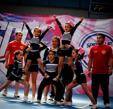 El cheerleaders es un deporte que se basa principalmente en gimnasia artística, elevaciones, bailes y saltos.
