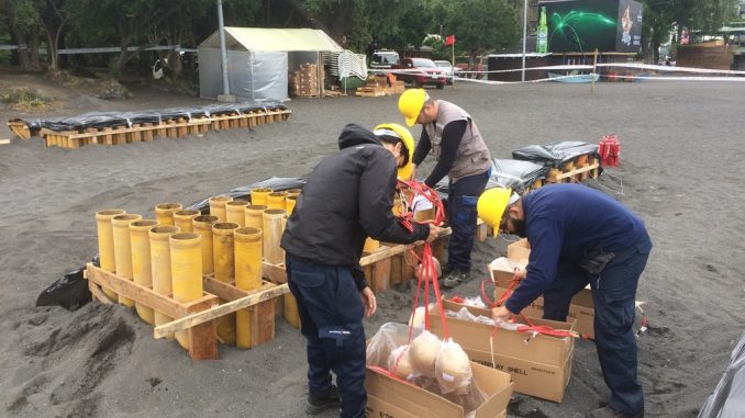 La mañana de este viernes comenzó la instalación de las más de 8 toneladas de fuegos artificiales que darán la bienvenida a este 2018 en Pucón. En la ocasión, personal de la empresa española Igual, comenzó a enterrar los morteros y colocar las bombas en el sector de la Playa Grande, los que darán vida a uno de espectáculos pirotécnicos más grandes del país.