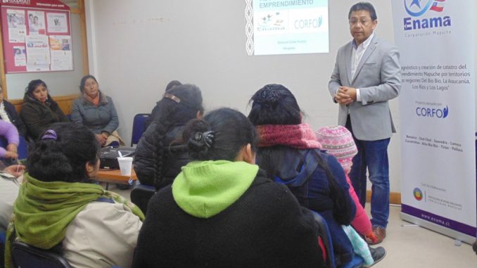 Este viernes la Corporación de Profesionales Mapuche Enama, en conjunto con la municipalidad de Curarrehue realizará una capacitación acerca de materias de emprendimientos e innovación a emprendedores mapuches de la comuna de Curarrehue, esto con motivo del proyecto denominado “Diagnostico y creación de catastro del emprendimiento Mapuche por territorios en las regiones del Bío Bío, La Araucanía, Los Ríos y Los Lagos”, realizado por Enama y con el apoyo de Corfo, el cual pretende catastrar los emprendimientos de las ocho comunas asociadas a la AMCAM (Asociación de Municipalidades con Alcaldes Mapuches)