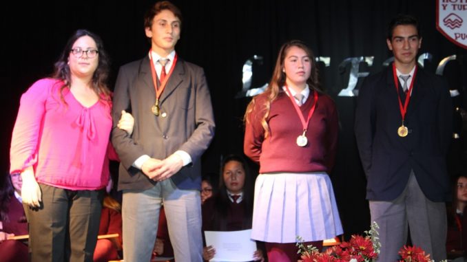 Durante la emotiva ceremonia, se entregaron las respectivas licencias y también se reconoció a los jóvenes que durante sus cuatro años de estudios se destacaron en diversas actividades y acciones. El premio al mejor rendimiento académico, recayó en los alumnos Allison Ananías Venegas Llanquiman, Diego José Angulo Achondo, Vicente Ramírez Cañupal, Yarela Dalila Cares Contreras y Camila Ibáñez Cuevas. Otro de los premios otorgados fue al esfuerzo, distinción que se adjudicó la alumna, Eugenia Garrido Alcapan.![]()