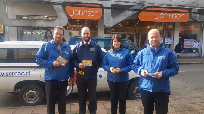 Durante una actividad realizada en calle Manuel Bulnes 460 frente a la Galería Massmann el Director Regional del SERNAC, Arturo Araya, junto al Inspector de la PDI, Ángel Sandoval, entregaron volantes a los transeúntes, donde se dan a conocer los derechos de los consumidores y las recomendaciones para un uso seguro de las tarjetas de crédito.