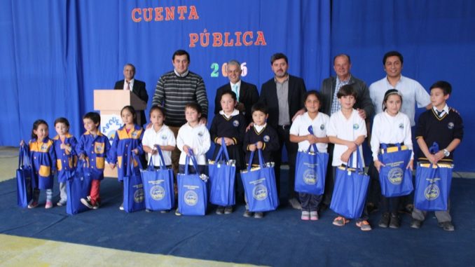 Al término de la Cuenta Pública 2016, se procedió hacer una entrega simbólica del uniforme a los niños y niñas de Pre Kinder a octavos años, consistente en una parca que fue adquirida por la escuela gracias a Fondos de la Subvención Escolar Preferencial (S.E.P), que beneficiará a más de 300 niños de la institución.