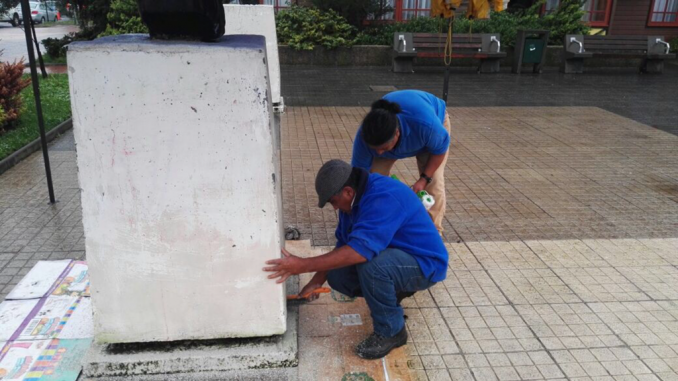 De esta forma, voluntarios del programa, quisieron hacer un ofrecimiento a la comuna, pintando los monolitos de próceres que acompañan la plaza cívica consistorial. Es así, como en coordinación con la administración municipal, quienes facilitaron los insumos necesarios, se realizó la recuperación de estos espacios públicos.