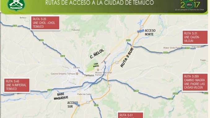 Por el Norte, los vehículos podrán ingresar al sector oriente de Temuco por el Cruce Cajón con dirección Avenida Barros Arana.