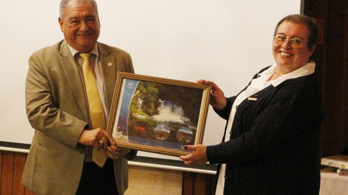 Alcalde entregó un reconocimiento a la presidenta de la filial de Pucón Emma Salazar, quien destacó el trabajo en la ciudad lacustre.