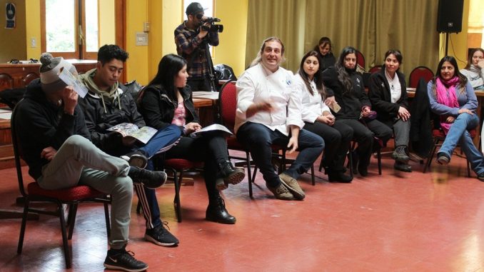 Un cordial encuentro sostuvieron los alumnos del Liceo de Hotelería y Turismo junto al reconocido chef nacional Mikel Zulueta, en el marco de la séptima versión del festival gastronómico Expo Sabores 2018, bajo la organización de la Agrupación Pucón Chef y el patrocinio de la Municipalidad de Pucón.
