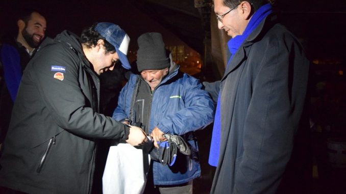 Con un recorrido por las calles de Temuco, junto al equipo del Código Azul y Desafío Levantemos Chile, el Seremi de Desarrollo Social y Familia, Rodrigo Carrasco, entregó estos Kit de abrigo a las personas que se encuentran en situación de calle “Hoy gracias a la campaña Abriguemos Chile hemos traído los Kit de abrigo, esto es una parka de alta montaña de muy buena calidad, que se compraron gracias a las donaciones de miles de personas, junto a un gorro, guantes y primera capa para que las personas que pasan estas noches expuestos a las bajas temperaturas puedan pasar una noche más calentita. Esto es parte de los desafíos que plantea el Gobierno del Presidente Piñera para ir en ayuda de las personas más vulnerables, especialmente los que tienen que pasar esta noche tan helado en la calle” señaló Carrasco.