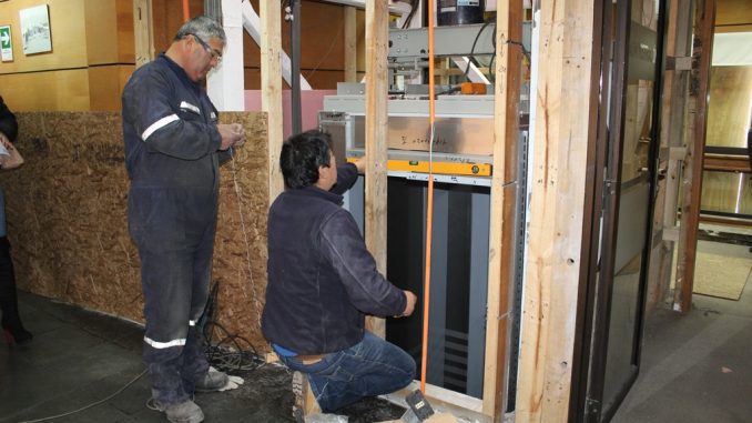 Intensos son los trabajos que por estos días desarrolla la empresa ejecutora de las obras del nuevo ascensor municipal en el edificio consistorial de Pucón. Una obra que mantuvo en una larga espera tanto a las autoridades, funcionarios y principalmente las personas en situación de discapacidad, además de todos aquellos con movilidad reducida y adultos mayores, quienes por años habían anhelado la construcción de un ascensor que facilite su participación en actividades públicas en el Auditórium del Municipio, ubicado en el tercer piso del edificio y que hoy ya es casi una realidad.