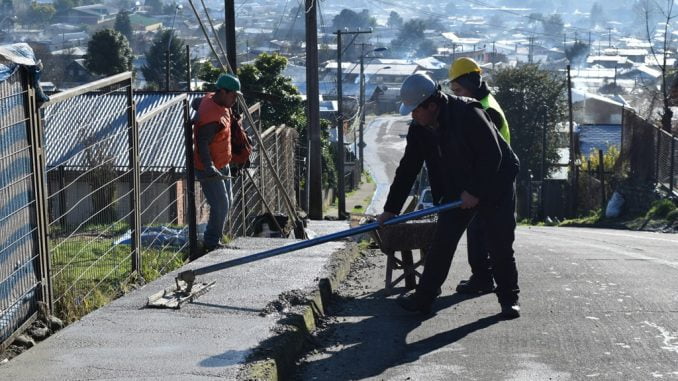 Un 90% de avance contemplan las obras de construcción de nuevas veredas para Villarrica. Los trabajos corresponden a un proyecto presentado por el Municipio local y financiado por el Fondo Regional de Iniciativa Local FRIL por un monto cercano a los 30 millones de pesos.