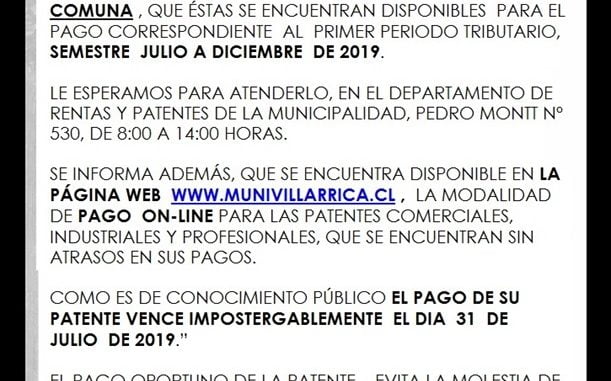 La Municipalidad Villarrica informa disponibilidad de documentación Viernes, 12 Julio, 2019 a las 19:06 prensa Comunas 0 Twitter Facebook LinkedIn WhatsApp Twitter Facebook LinkedIn WhatsApp Relacionado Villarrica