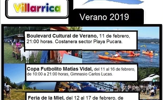 Panoramas del verano en Villarrica: Boulevard cultural, Copa Futbolito y Feria de la Miel Lunes, 11 Febrero, 2019 a las 14:09 prensa Comunas 0 Twitter Facebook LinkedIn WhatsApp Twitter Facebook LinkedIn WhatsApp Relacionado PanoramasVillarrica
