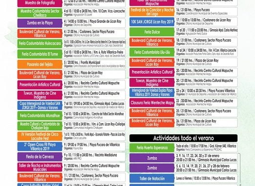 Programa de eventos de verano febrero 2019 en Villarrica Viernes, 1 Febrero, 2019 a las 19:40 prensa Comunas 0 Twitter Facebook LinkedIn WhatsApp Twitter Facebook LinkedIn WhatsApp Relacionado Villarrica