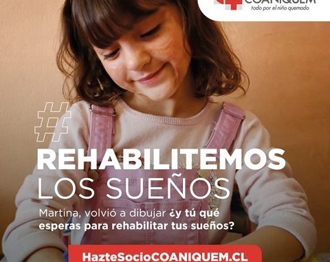 Junto con llamar a todos a cuidar a nuestros niños y evitar sus quemaduras en el hogar, COANIQUEM invita a la comunidad a sumarse como socios cooperadores realizando un aporte mensual. La campaña #RehabilitemosLosSueños se centra en los sueños de los niños que se vieron truncados cuando se quemaron, pero que hoy gracias al apoyo mensual de los socios cooperadores, pueden volver a ser una realidad, gracias a la rehabilitación recibida en COANIQUEM. “Antes de llegar a COANIQUEM la Martina tuvo el peor pronóstico con sus manos y en la primera consulta con el fisiatra de COANIQUEM, el doctor me dio la tranquilidad de que a los 5 años, cuando entrara al colegio, sus manos serían completamente funcionales, podría tomar un lápiz o cortar con una tijera como cualquier otro niño. Para mi sorpresa la Martina mucho antes de los 3 años hacía eso y más.”, señala Katy Halvorsen, mamá de Martina, paciente de COANIQUEM desde 2015.