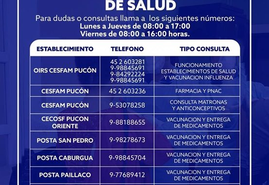 “Este Departamento de Salud Municipal será responsable con nuestros usuarios y usuarias de la comuna y no fomentaremos la toma de un test que conduce a un mal diagnóstico; por consiguiente, la posibilidad de mayores contagios de los contactos de las personas que se tomaran el test y resultara negativo, siendo que realmente puedan ser positivo. Por ahora, sólo nos queda reiterar la invitación a “QUEDARSE EN CASA” y hacer uso de los teléfonos del Servicio de Salud Araucanía Sur, en caso de sospecha, son los siguientes: 452 556495 – 452 553706 – 452 553707 – 452 556486 y 452 556328”, concluyó la profesional.