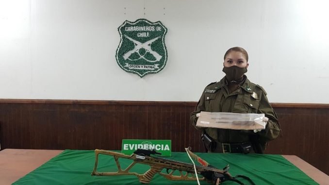 “Al llegar Carabineros al lugar, lograron visualizar a dos individuos de los cuales uno de ellos portaba una ballesta, la que al aproximar y descender el personal policial, utiliza para amenazar a uno de los funcionarios, apuntándole e indicándole ‘te voy a matar’, para posteriormente darse a la fuga hacia un domicilio donde causó daños en el portón perimetral, ingresando al patio, lugar en donde se logró su detención, tratándose de hombre adulto con antecedentes penales y sin órdenes vigentes”, señaló el Capitán Álvaro Ascencio, de la 9a. Comisaría “Pucón”.