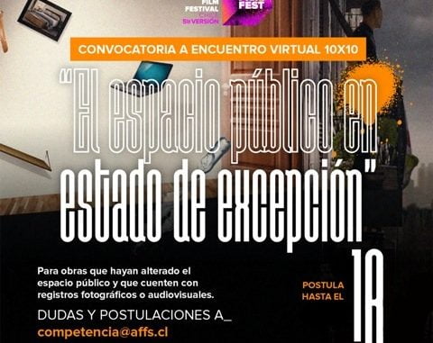 Desde octubre de 2019 hasta hoy hemos pasado de calles desbordadas, repletas de gente, a avenidas vacías que nos vuelcan a la intimidad de nuestras vivencias privadas. En el contexto de este periodo de permanente “estado de excepción” ArqFilmFest invita a artistas plásticos, fotógrafos, cineastas, muralistas, escultores, pintores, performistas, serigrafistas, colectivos y otros creadores y creadoras, chilenas o residentes, a presentar obras que hayan alterado la ciudad con su expresión en el museo abierto de la calle.