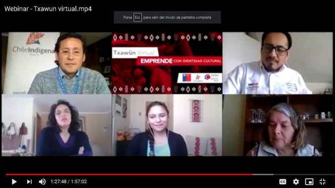 Más de 40 emprendedores mapuche de diversos rubros participaron del webinar "Txawün Virtual: Emprende con identidad cultural" el cual se realizó en el marco del convenio de cooperación entre el Programa Chile Indígena de CONADI y el Centro de Negocios "Inakeyu" de Sercotec Araucanía.
