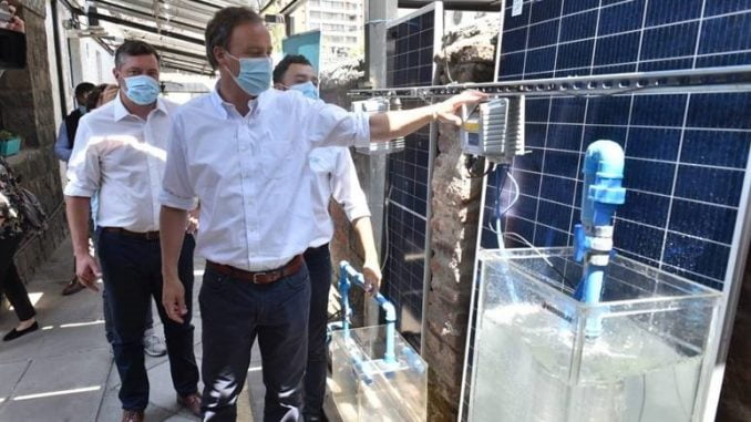 Durante este mediodía el ministro de Vivienda y Urbanismo, Felipe Ward, junto al presidente del Banco Estado, Sebastián Sichel, visitaron el laboratorio de energías limpias SER-CAP, en la comuna de Providencia, para explicar las ventajas que genera en las viviendas incorporar elementos de sustentabilidad como paneles fotovoltaicos o sistemas solares térmicos. Además, explicaron el funcionamiento de los “créditos verdes”, parte de la alianza entre ambas instituciones, que ofrecen tasas preferenciales para adquirir y mejorar viviendas con uso de energías limpias.