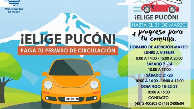 De esta manera, la institucionalidad le extiende un llamado y en su calidad de vecino de la comuna le invita a ser parte del desarrollo comunal, con el slogan: “Elije Pucón… Paga tu permiso de circulación”.