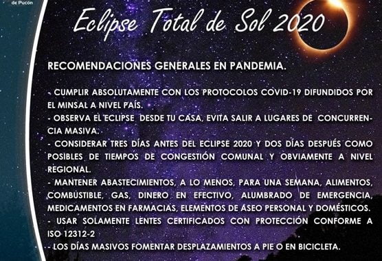 “La Municipalidad de Pucón mantiene en análisis y trabajo técnico permanente un Staff Eclipse 2020 con funcionarios de diferentes áreas presentando un equipo multidisciplinario que en sus actividades realizadas ha concentrado la visitación al Norte Chico antes y post eclipse del 02 de julio 2019, extrayendo las “lecciones aprendidas” y aspectos de experiencias para la recepción de una masiva concurrencia de visitas en los respectivos lugares donde se presentó oscuridad total (umbra)”, agregó Vera.