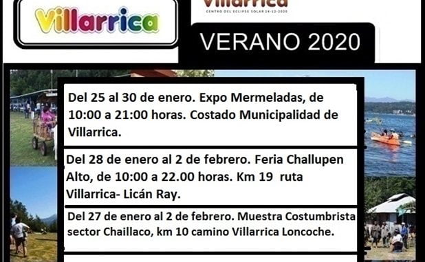 Panoramas verano 2020 en Villarrica Martes, 28 Enero, 2020 a las 20:59 prensa Events 0 Twitter Facebook LinkedIn WhatsApp Twitter Facebook LinkedIn WhatsApp Relacionado Villarrica