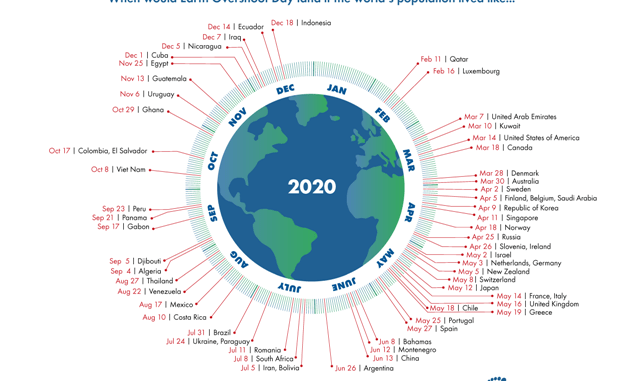 El primer país en sobregirarse este 2020 fue Qatar (11 de febrero), mientras que el último será Indonesia (18 de diciembre).