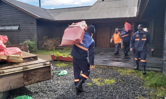 Esta ayuda se está canalizando entre la Oficina Municipal de Jóvenes, Defensa Civil, Cuerpo de Socorro Andino y la Dirección de Seguridad Pública de la Municipalidad de Pucón. Previo a la entrega de estos sacos, en coordinación con la Dirección de Desarrollo Comunitario del Municipio, se realizará la limpieza de los cañones en las casas.