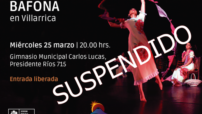 Se suspende presentación del BAFONA en Villarrica Martes, 17 Marzo, 2020 a las 17:19 prensa Cultura y Espectáculos 0 Twitter Facebook LinkedIn WhatsApp Twitter Facebook LinkedIn WhatsApp Relacionado BafonaVillarrica